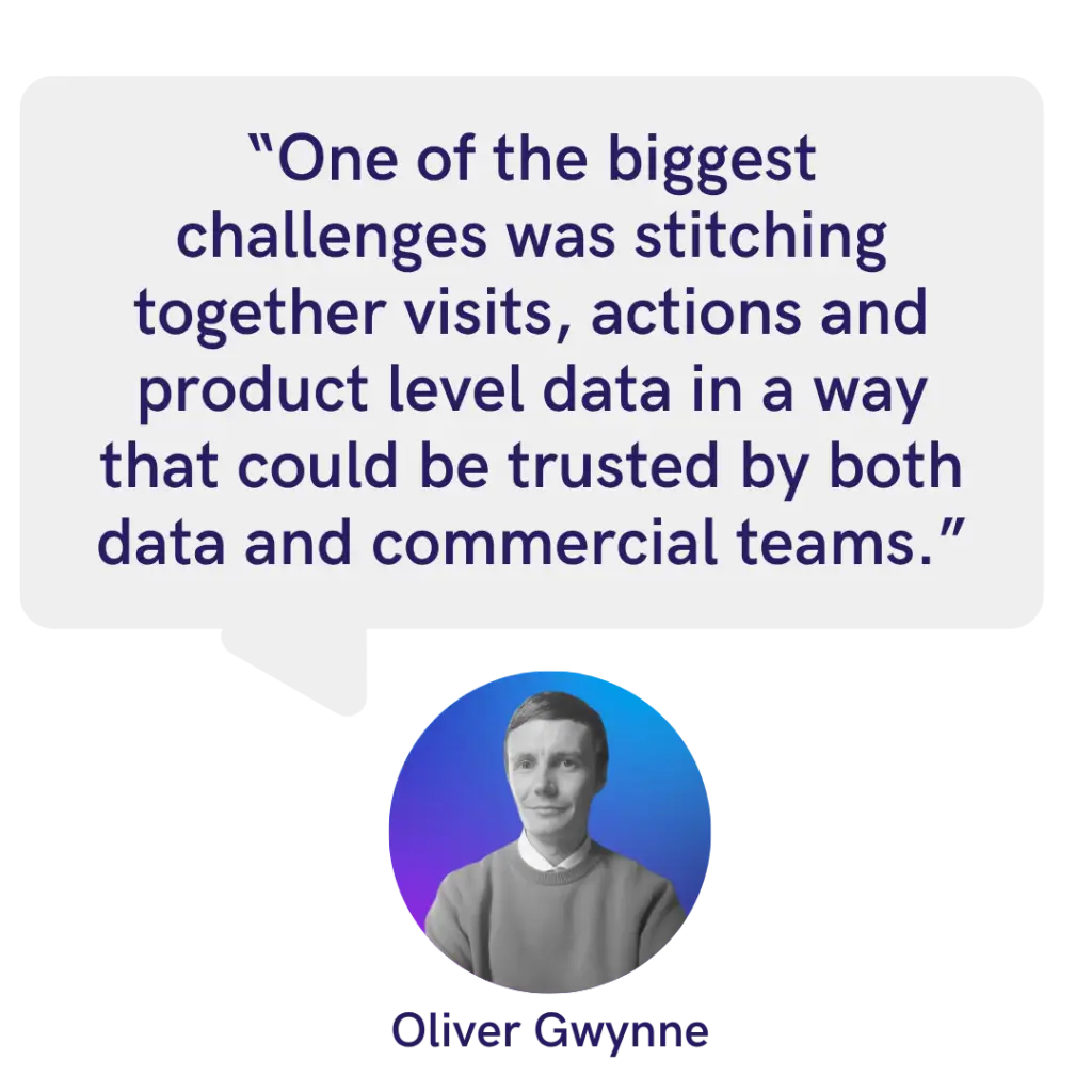 Fragmented Data Across the User Journey:User behaviour was being tracked across multiple tables and systems, making it difficult to form a unified picture of engagement. Metrics such as product views, vault interactions, and time spent were isolated from one another, complicating analysis and limiting visibility into the complete customer journey.