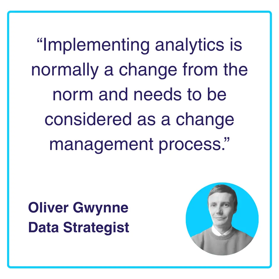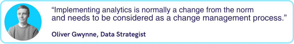 For most companies a ‘data-driven culture’ is a change from the norm, even now. And where there’s change, there needs to be management. This means that before you do anything, you need internal support from the c-suite, a project leader and a clear outcome.