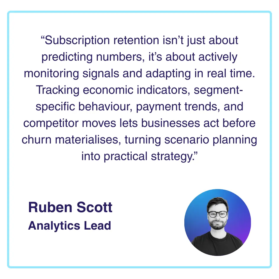 Most subscription businesses lack this infrastructure and analytical sophistication, making economic scenario planning impossible despite recognising its strategic value. Building proper capabilities typically requires data warehousing investments, statistical modelling expertise, and business strategy judgment that few companies assemble internally.