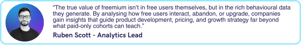 The strategic value of freemium lies not in its marketing appeal but in its capacity to generate behavioural data that reveals customer needs, value perception, and conversion dynamics. Every interaction a free user has with your product produces signals about what works, what confuses, what delights, and what drives payment decisions. The volume and richness of this data vastly exceeds what you can obtain from paid customers alone or from traditional market research.