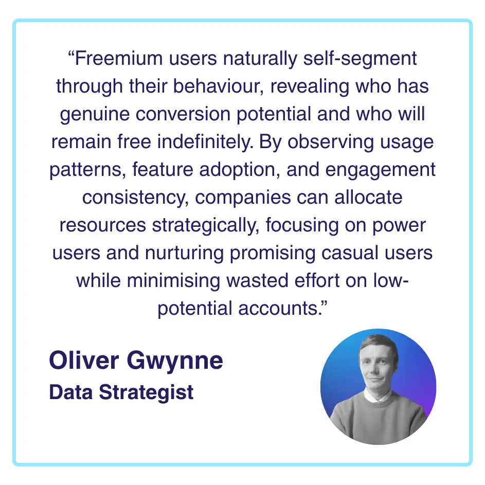 One of the most powerful aspects of freemium is that users naturally sort themselves into segments through their behaviour, revealing who represents genuine conversion opportunity versus who will remain free indefinitely. Understanding these self-segmentation patterns allows you to allocate resources strategically rather than treating all free users identically.