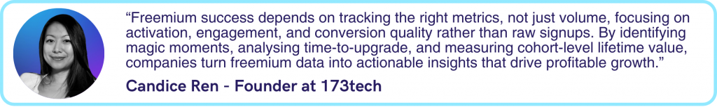 “Aha moment” identification, finding the specific action or threshold that predicts conversion, transforms freemium optimisation from guesswork to science. This might be the user’s tenth project created, their first collaboration with a team member, their first successful automation, or their first integration with another tool. Once identified, the aha moment becomes your North Star metric, the experience you optimise onboarding to deliver as quickly as possible. Finding these magic moments requires cohort analysis that connects early behaviours to later outcomes. You track dozens or hundreds of potential signals: feature usage, session patterns, milestone achievements, and identify which ones correlate most strongly with eventual conversion. The magic moment typically isn’t the most popular feature or the feature you think is most important. It’s the specific experience that predicts users will derive enough value to justify paying.