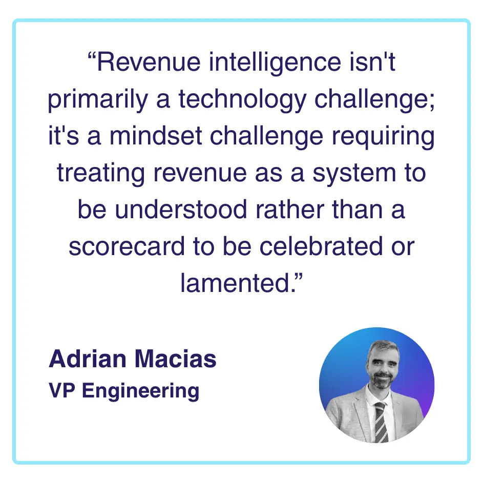 Each challenge requires connecting revenue outcomes to leading indicators; the behavioural signals, usage patterns, and engagement metrics that predict future revenue movements. A customer whose usage has declined 40% over three months probably has elevated churn risk even without cancelling yet. A customer who has adopted advanced features and invited team members probably has expansion potential even without requesting upgrades. Revenue intelligence is the framework for systematically identifying these patterns and acting proactively rather than reactively.