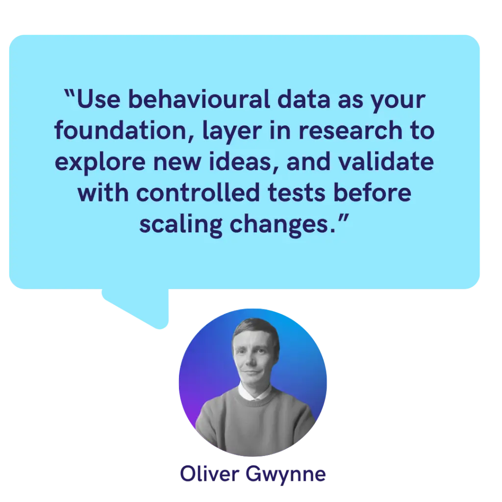 The strongest approach blends methods. Use behavioural data as your foundation, layer in research to explore new ideas, and validate with controlled tests before scaling changes.