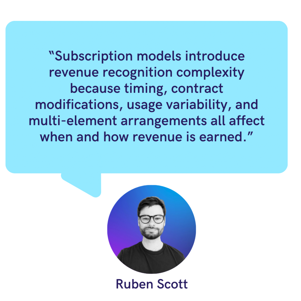 Contract modifications such as upgrades, downgrades, seat additions, term extensions etc, require judgment about whether to treat them as new contracts, replacements, or modifications to existing ones. The answer affects recognition timing and amounts, and requires accurate tracking of modification dates, old and new amounts, and what’s already been recognised.