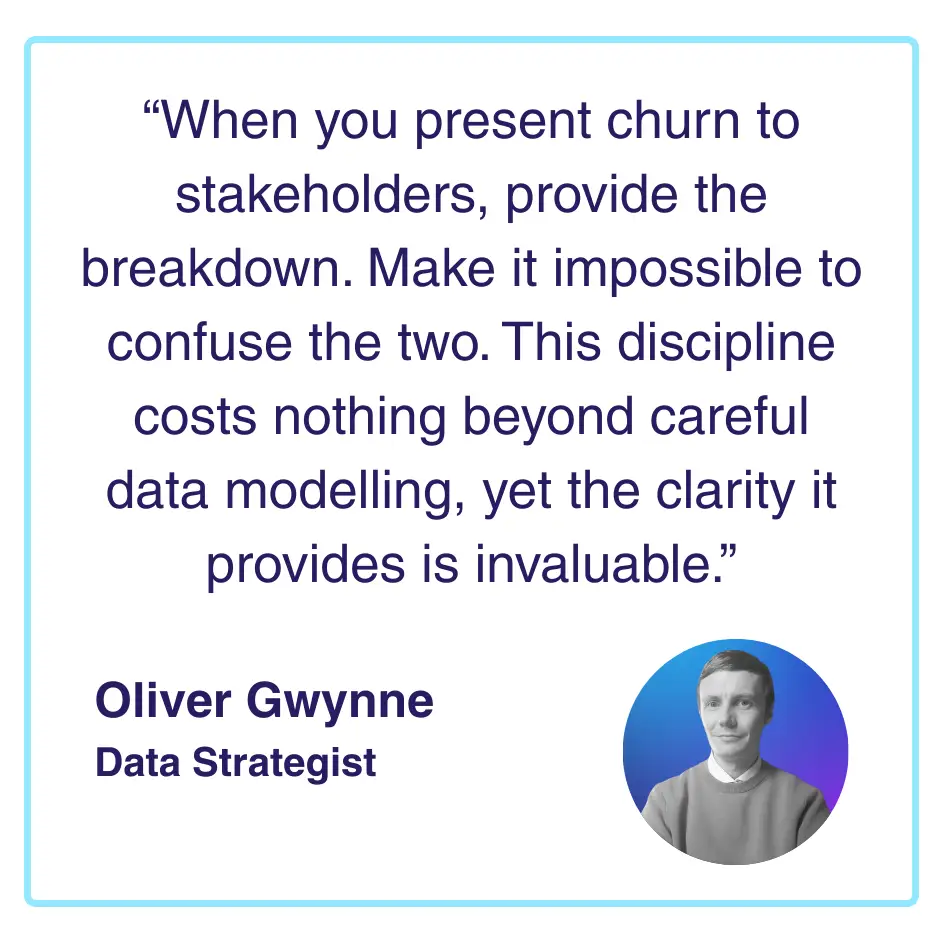 Downgrades warrant particular attention. When a customer moves from a higher-tier plan to a lower-tier plan, it is tempting to count this as a partial churn, a loss of revenue. But the customer has not left. They are signalling something more nuanced: the higher tier was not worth the price, but the product itself still has value. This is actionable intelligence. Perhaps the pricing is misaligned. Perhaps the feature set does not justify the premium. Perhaps the customer’s needs have changed. A downgrade is not the same as churn, and treating it as such obscures important signals.