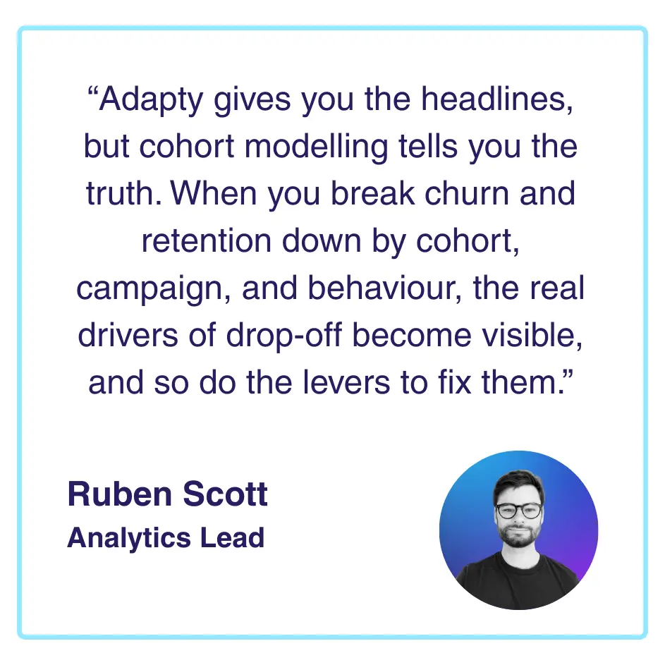 Adapty is excellent for paywall management and subscription tracking, but its native reporting is not enough for true business intelligence. By modelling the data in a warehouse, you unlock: