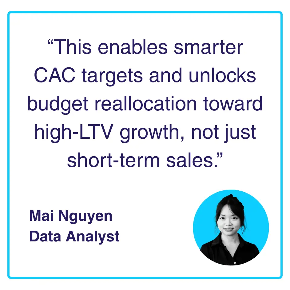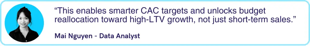 - Margin-adjusted LTV that reflects profitability, not just revenue