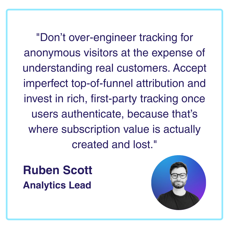 Many businesses have discovered that obsessing over perfect attribution for every anonymous visitor actually distracts from more valuable analytical work. If your trial conversion rate stands at 15%, improving your understanding of the 85% who visit your website but never sign up provides marginal value compared to understanding why trialling users do or do not convert to paid subscriptions. The latter question involves users you can identify, track comprehensively, and analyse deeply using your own data.