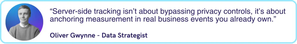 However, server-side tracking does not entirely eliminate the need for client-side measurement. Understanding user behaviour on your website; which pages they visit, how they navigate, where they encounter friction, still requires some client-side tracking. The optimal approach combines both methods: server-side tracking for critical business events and conversions, complemented by privacy-respecting client-side tracking for behavioural insights where users have provided consent.