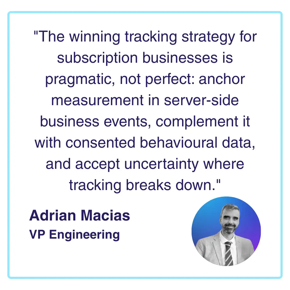 For subscription businesses specifically, these limitations create particular challenges. Understanding customer acquisition costs requires accurate attribution across the full customer journey. Optimising free trial conversion rates demands visibility into user behaviour patterns. Reducing churn necessitates identifying early warning signals in product usage. When tracking only captures a biased subset of users (typically those least concerned about privacy) all of these critical analyses become fundamentally compromised.