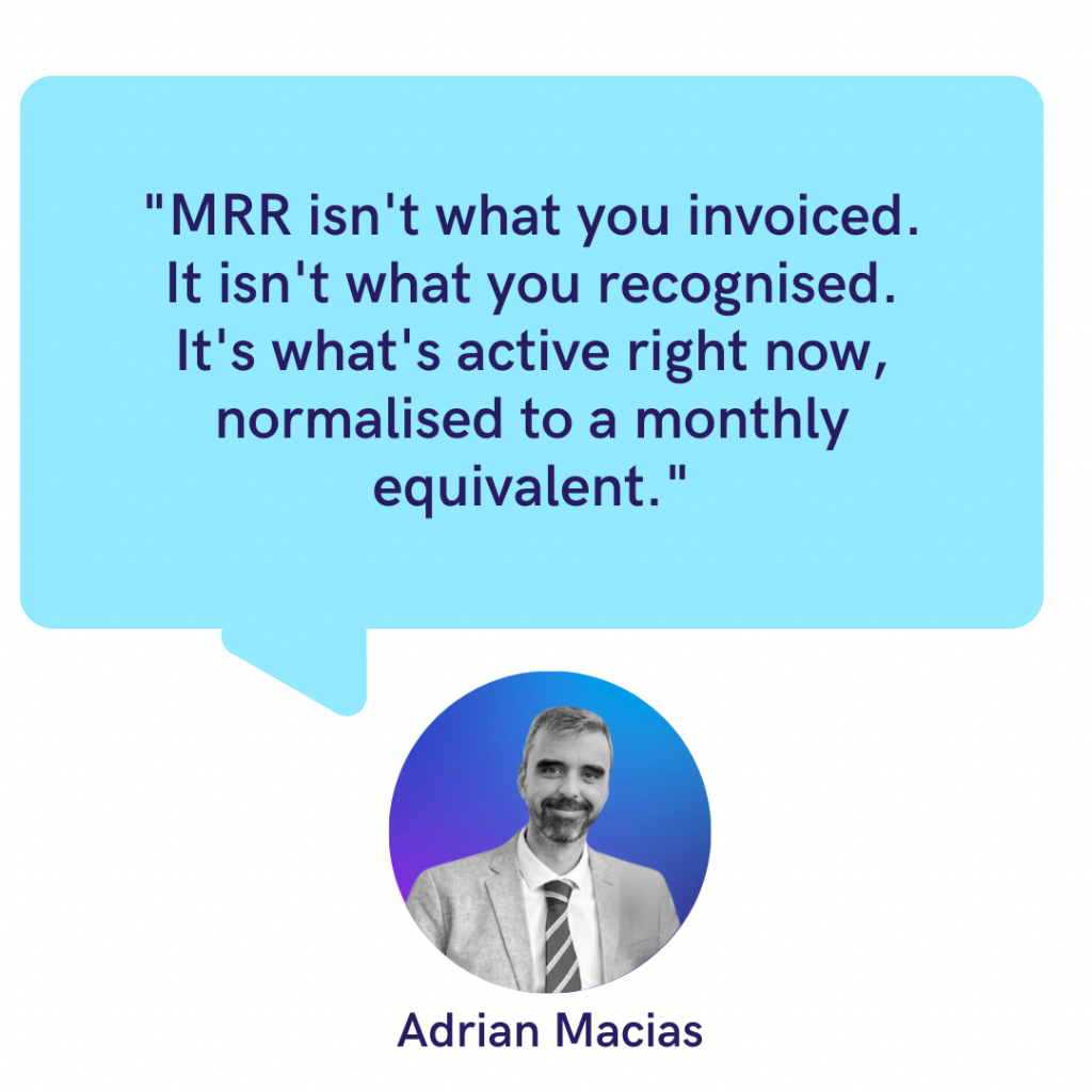 The most consequential mistake is conflating MRR with recognised revenue. They measure different things. Recognised revenue accounts for partial-month contributions from customers who joined or left mid-period. MRR at month-end reflects only what’s active at that moment. Mixing the two creates inconsistencies that undermine confidence in every number downstream.